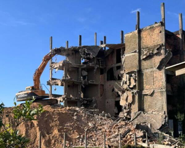 Uma construção abandonada há mais de duas décadas em Balneário Camacho, em Jaguaruna, começou a ser demolida. A obra, iniciada em 1993 – abandonada cinco anos depois – apresentava risco iminente de desabamento.