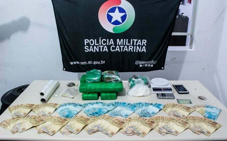 Já em Laguna, o homem foi detido e no interior do veículo foram encontrados 320 gramas de cocaína e cinco quilos de maconha, além de R$ 14.500,00 em dinheiro. A droga dispensada pela janela foi recuperada e apreendida.