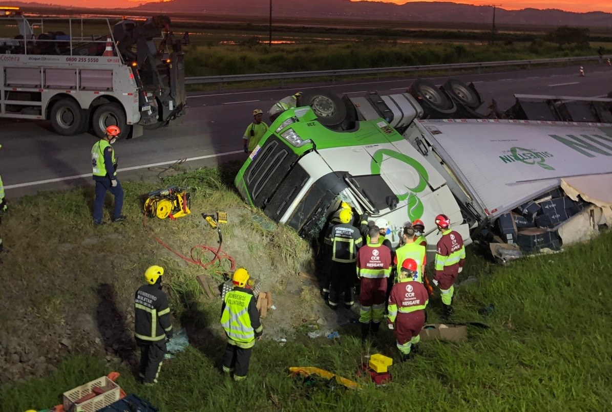 Atuaram na ocorrência a Polícia Rodoviária Federal (PRF), o Corpo de Bombeiros e a equipe de segurança e suporte da CCR ViaCosteira.