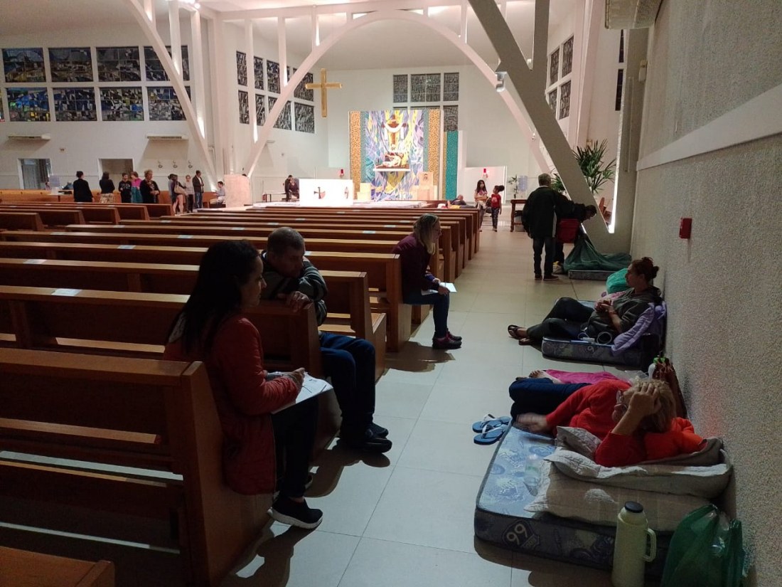 A Catedral de Tubarão já acolhe mais de 50 pessoas que saíram de suas casas em busca de abrigo seguro diante dos alagamentos que estão sendo registrados na cidade.
