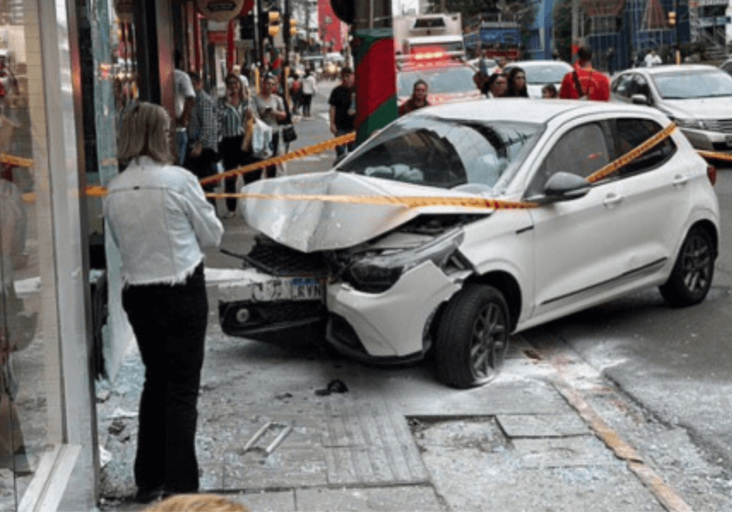 Condutora perde controle do carro e bate contra vitrine de loja no Centro