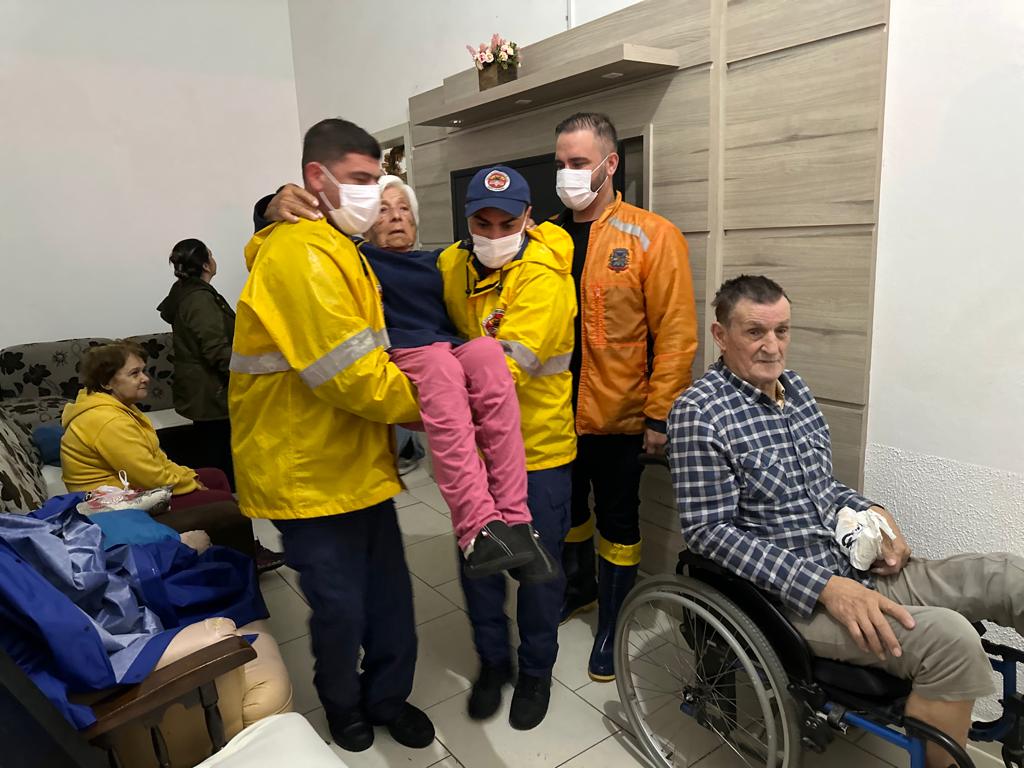 No final da tarde desta quinta-feira, dia 15 de junho, por precaução, a Coordenadoria de Proteção e Defesa Civil de Tubarão, em trabalho conjunto com os Bombeiros Militares, transferiram os idosos atendidos na Casa de Repouso Ággia, no bairro Vila Moema, para o Centro de Treinamento da Epagri, no bairro São Martinho.