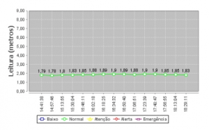 De acordo com o monitoramento realizado pela Plantar Agronomia, o nível máximo atingido foi de 1,91 metro, registrado às 17h23. A última atualização, por exemplo, indica que esse patamar já diminuiu para 1,83 metro.