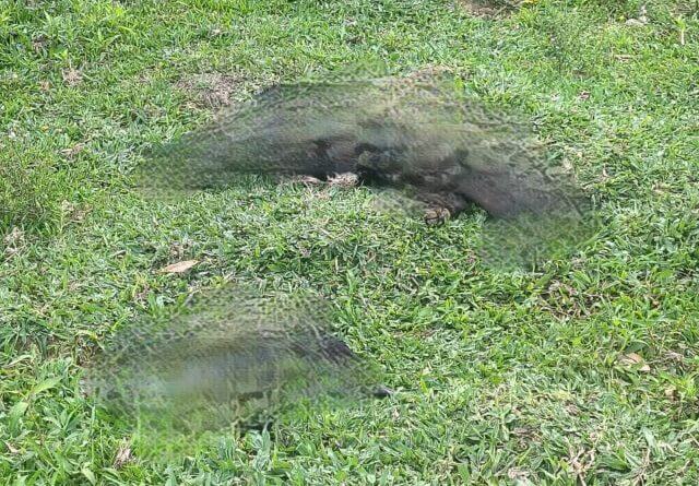 De acordo com os agentes, um terceiro cão foi resgatado com vida, e, segundo os relatos, até urubus que se alimentaram das carcaças morreram no local.