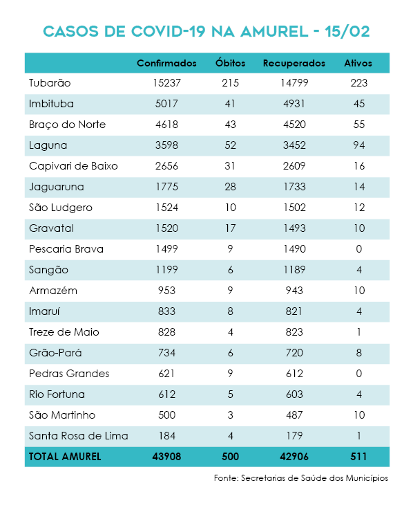 O início na pandemia do novo coronavírus na Amurel completou onze meses nesta segunda-feira, 15. Durante esse período, a região acumula 43.908 casos confirmados da doença. 97,7% das pessoas que contraíram a Covid-19 já estão curados.