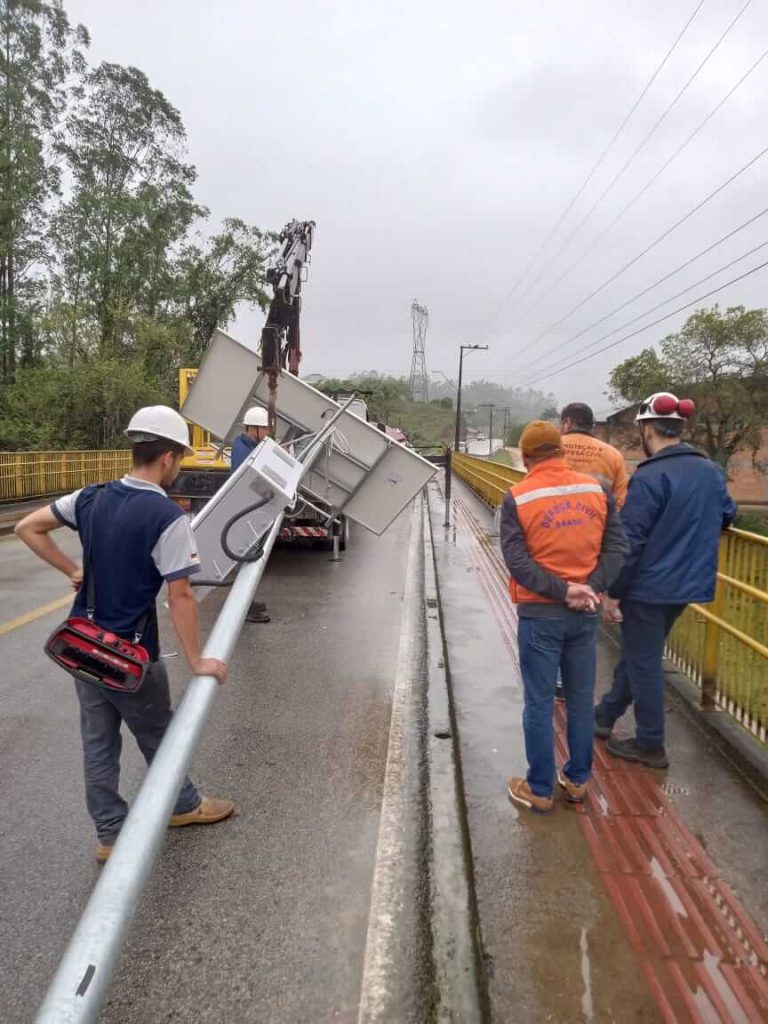 Foi instalada na manhã de ontem, dia 10 de outubro, na ponte José Schotten, no centro de São Martinho, a estação meteorológica fluviométrica que vai auxiliar no monitoramento das condições atmosféricas como chuva, temperatura, umidade do ar e pressão atmosférica na cidade.