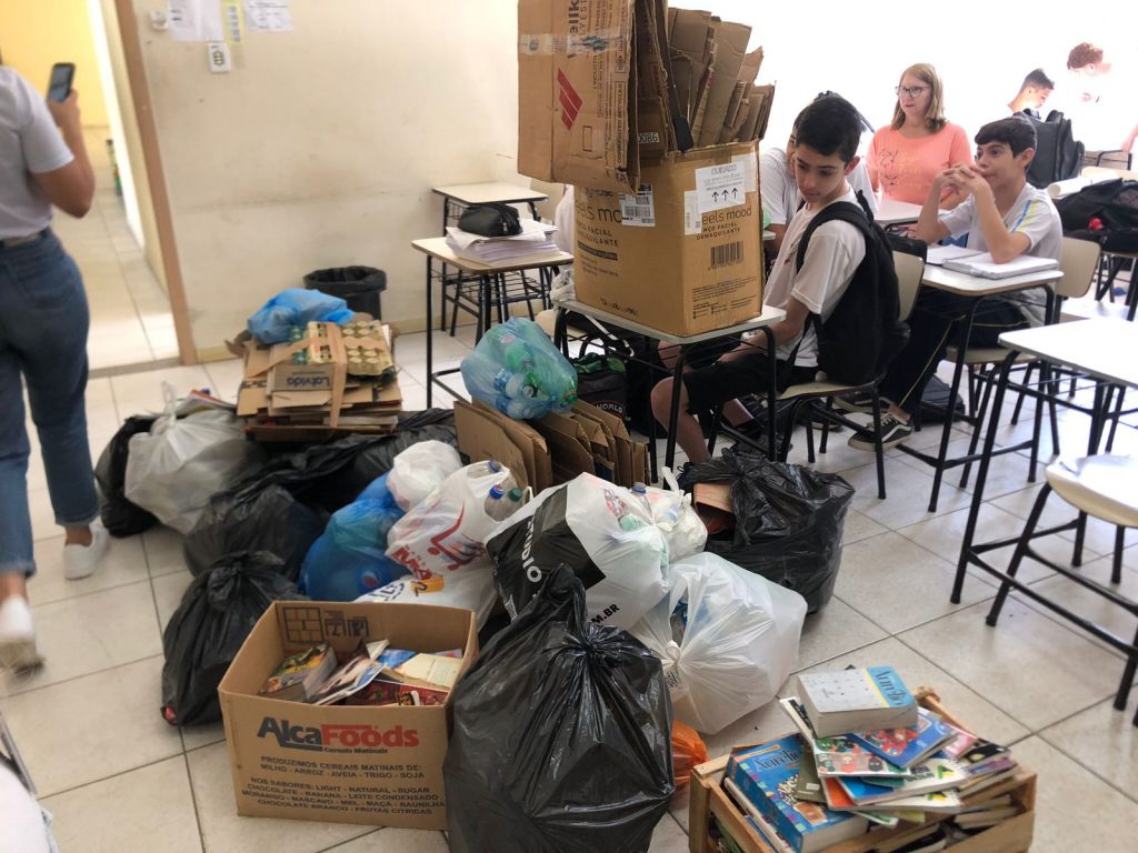 Alunos do 8º ano da Escola Municipal de Educação Básica Stanislau Gaidzinski, de Capivari de Baixo, recolheram cerca de 700 kg de resíduos recicláveis durante uma gincana para promover a sustentabilidade.