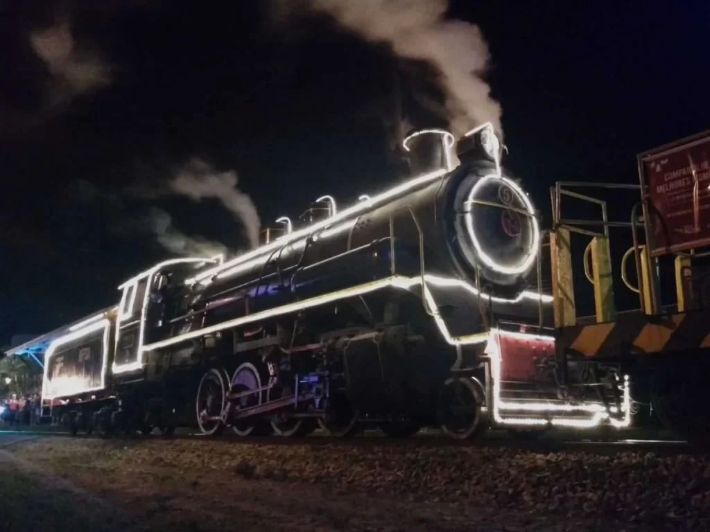 O passeio inclui visita ao maior acervo de locomotivas a vapor da América Latina, presença do Papai Noel, e uma parada de 2 horas em Jaguaruna, onde há programação natalina.
