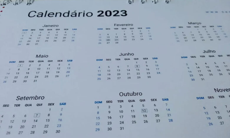 O ano de 2023 contará com 12 feriados, sendo cinco deles prolongados. O calendário leva em consideração as datas oficiais e também os pontos facultativos, que são dias em que a folga é opcional e cabe ao empregador definição.