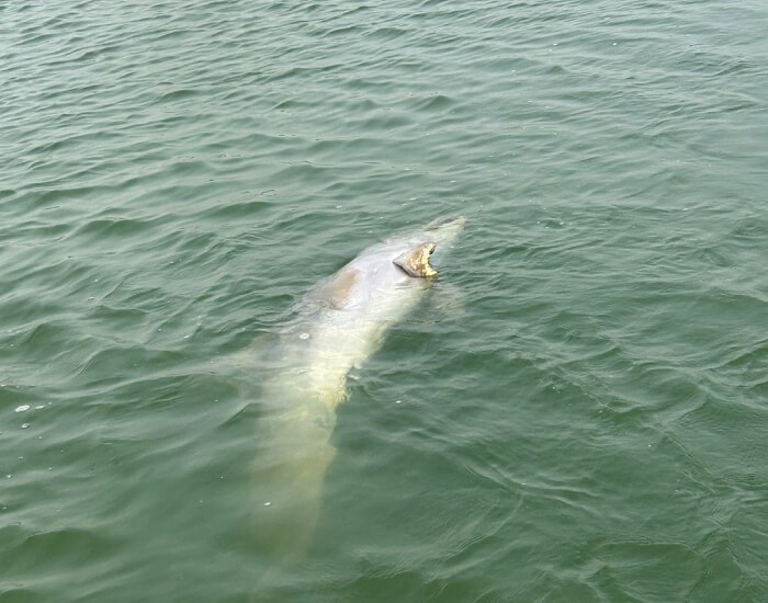 Os pescadores acreditam que o cetáceo seja filhote da boto conhecida na região como Borracha.