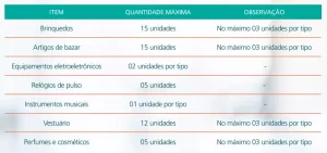 Entre os objetos que serão ofertados com preços abaixo dos praticados no mercado comum, estão brinquedos, eletrônicos, celulares, vestuários, perfumes e cosméticos.