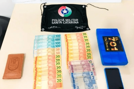 No interior do veículo foram encontrados R$ 824 reais em espécie, um celular e 1,025 quilo te cocaína. A droga seria entregue em tubarão.