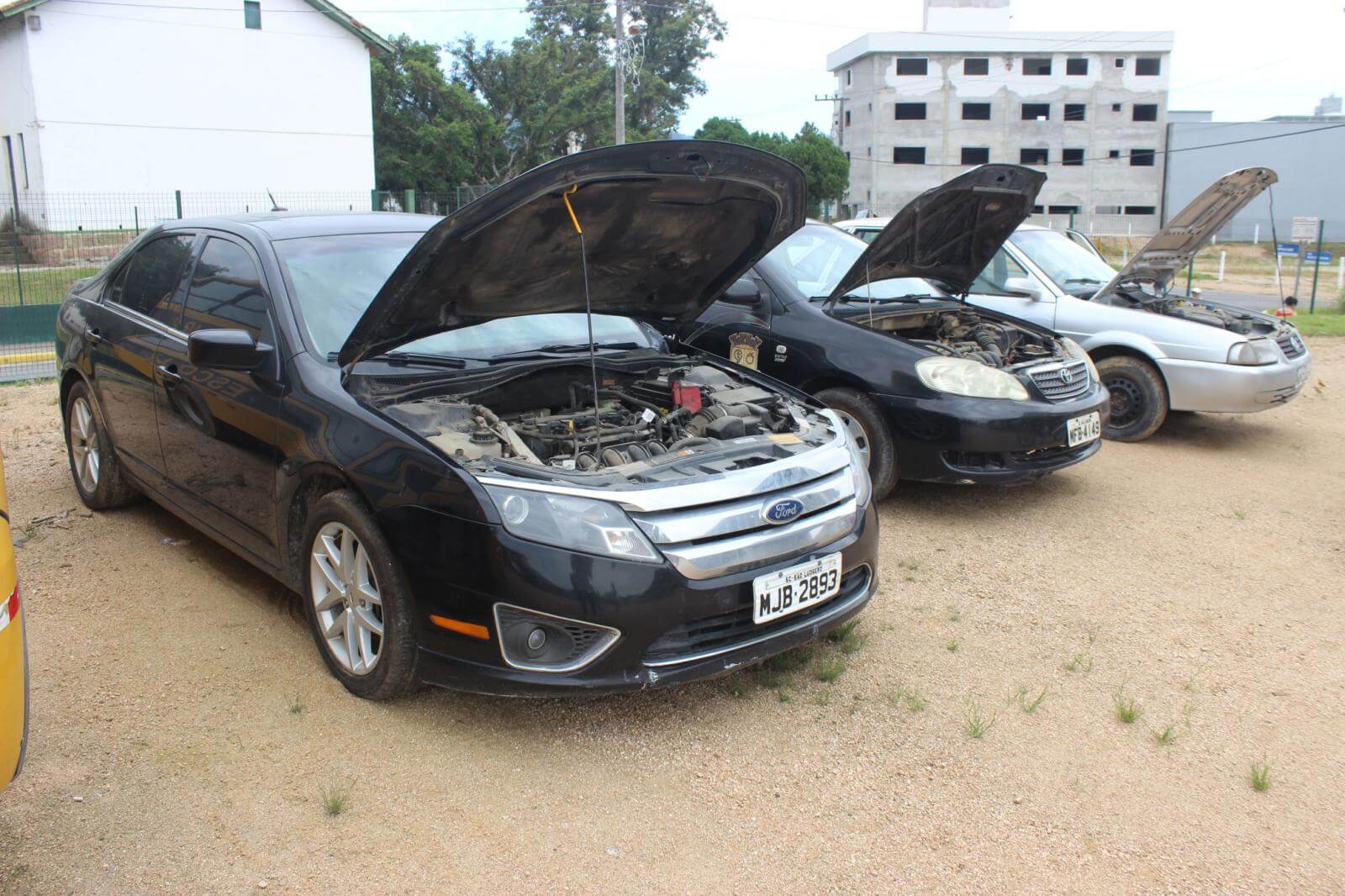 Entre os automóveis disponíveis, há um Toyota Corolla 2007/2008 e um Ford Fusion 2012/2013.