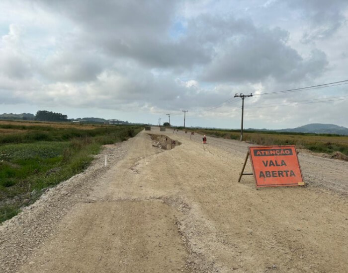 Os constantes rompimentos de aterro na Estrada da Jabuticabeira, em Jaguaruna, causados pela presença de solos moles ao longo da rodovia, continuam impedindo o avanço definitivo da pavimentação.