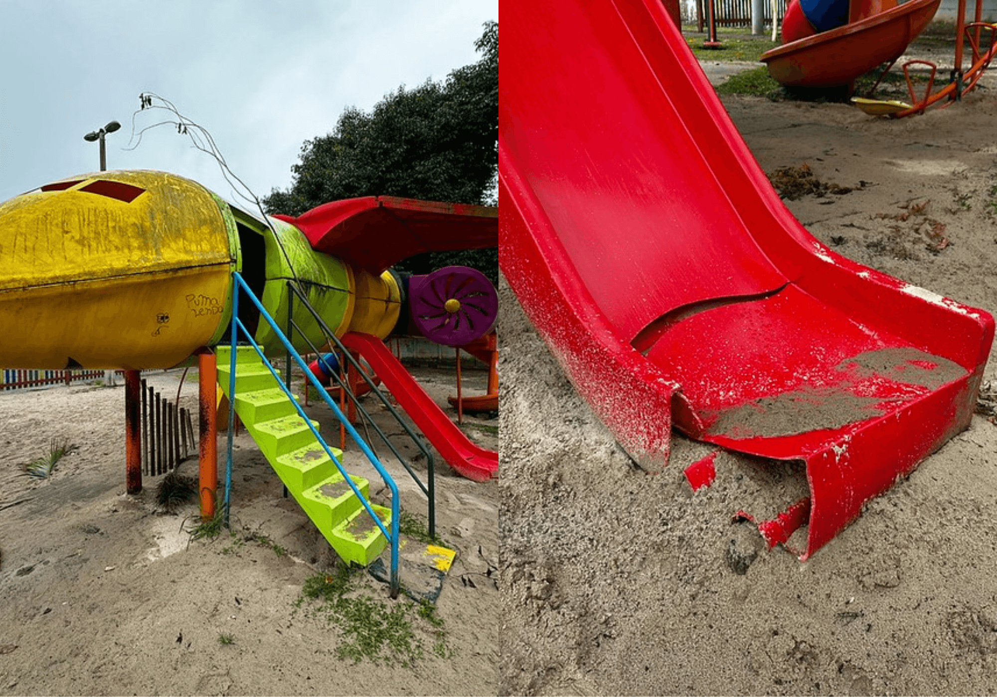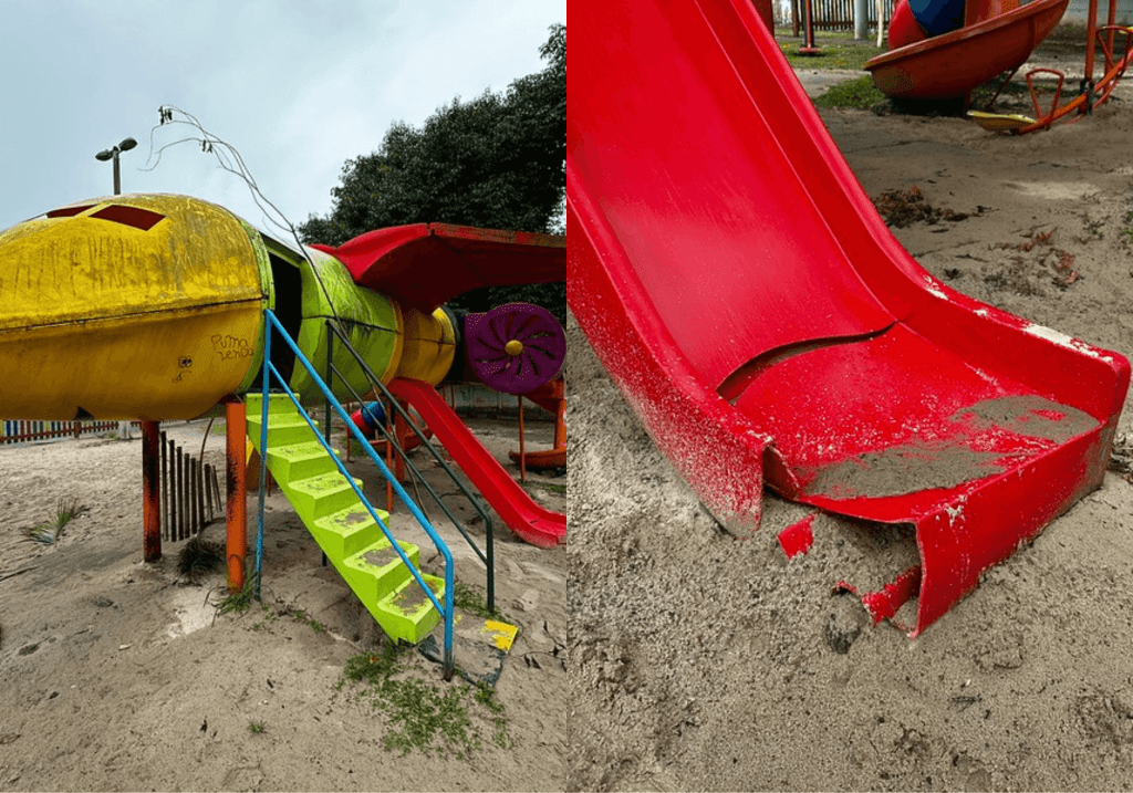 De acordo com o órgão, os brinquedos instalados no local apresentam graves danos estruturais e apenas as partes metálicas dos equipamentos apresentam possibilidade de recuperação.