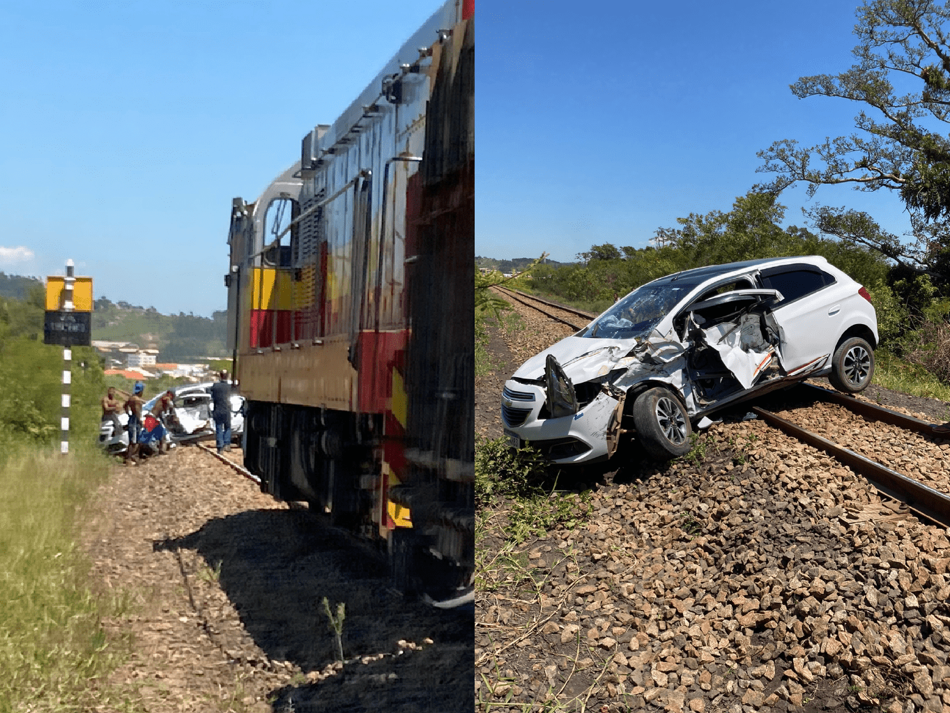 Nesta terça-feira, dia 24 de janeiro, o motorista de um carro Chevrolet, modelo Ônix, não observou a aproximação de um trem na passagem de nível, no cruzamento rodoferroviário, em Sangão, e acabou tendo o veículo atingido pelo comboio da Ferrovia Tereza Cristina (FTC).