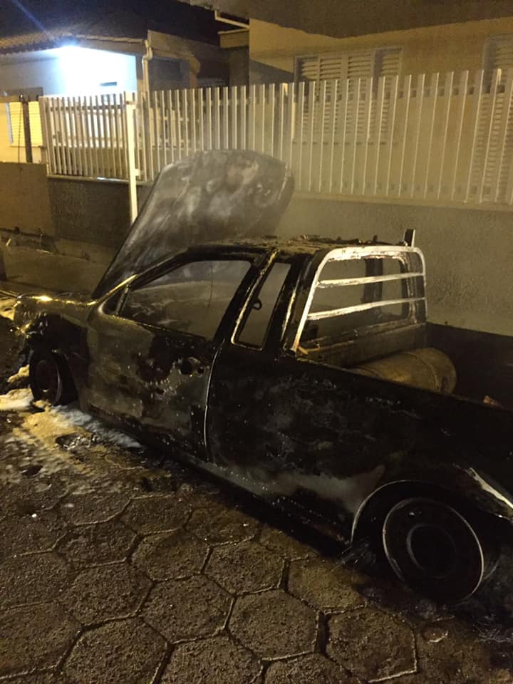 Uma Saveiro foi destruída pelo fogo durante a noite deste sábado, dia 16 de outubro, por volta das 20 horas, no bairro Camacho, em Jaguaruna. Os Bombeiros Voluntários do município foram acionados para atender a ocorrência. Entretanto, quando chegaram no local o fogo já havia tomado o veículo. Ninguém ficou ferido.