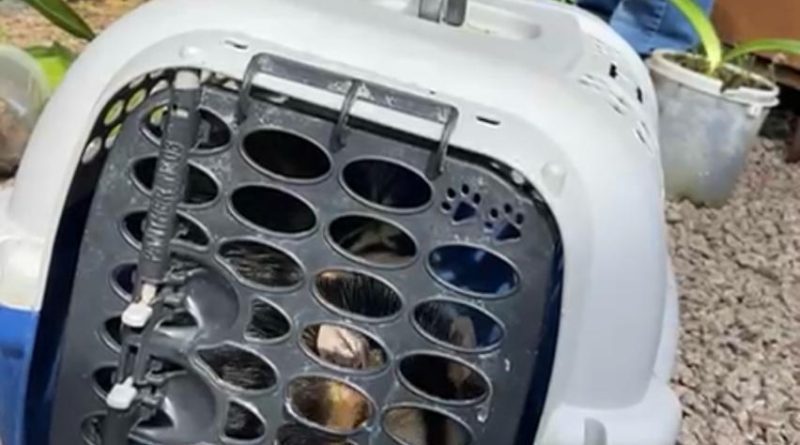 Secretaria de Agricultura e Pesca resgata família de gambás nos fundos de residência