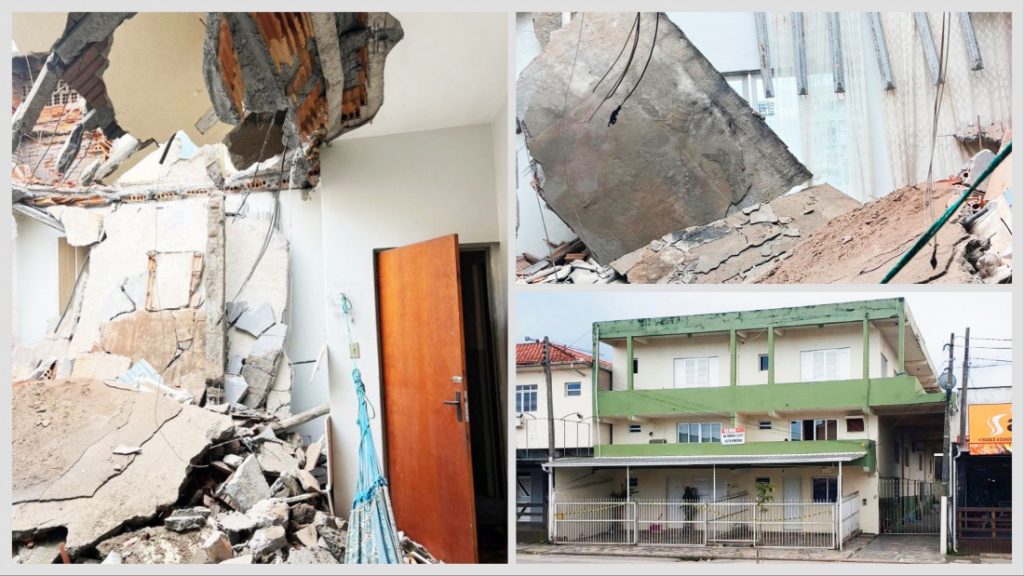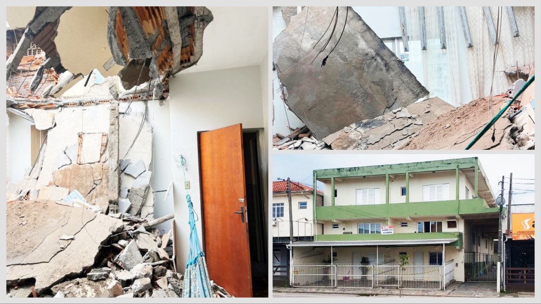 Sete famílias são retiradas às pressas de prédio localizado em Tubarão após queda de laje