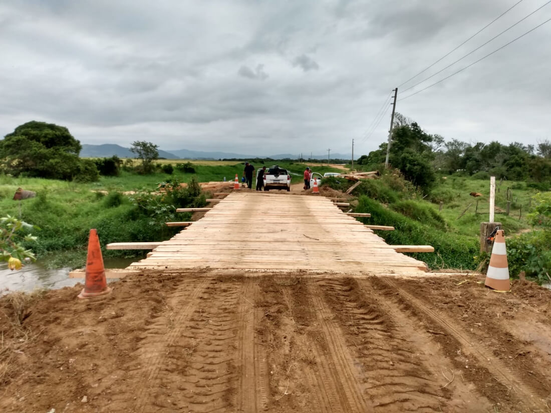 Segundo a Administração Municipal, a ponte recuperada será provisória. A empresa responsável pela pavimentação da via, por contrato, deve construir uma nova estrutura em concreto.