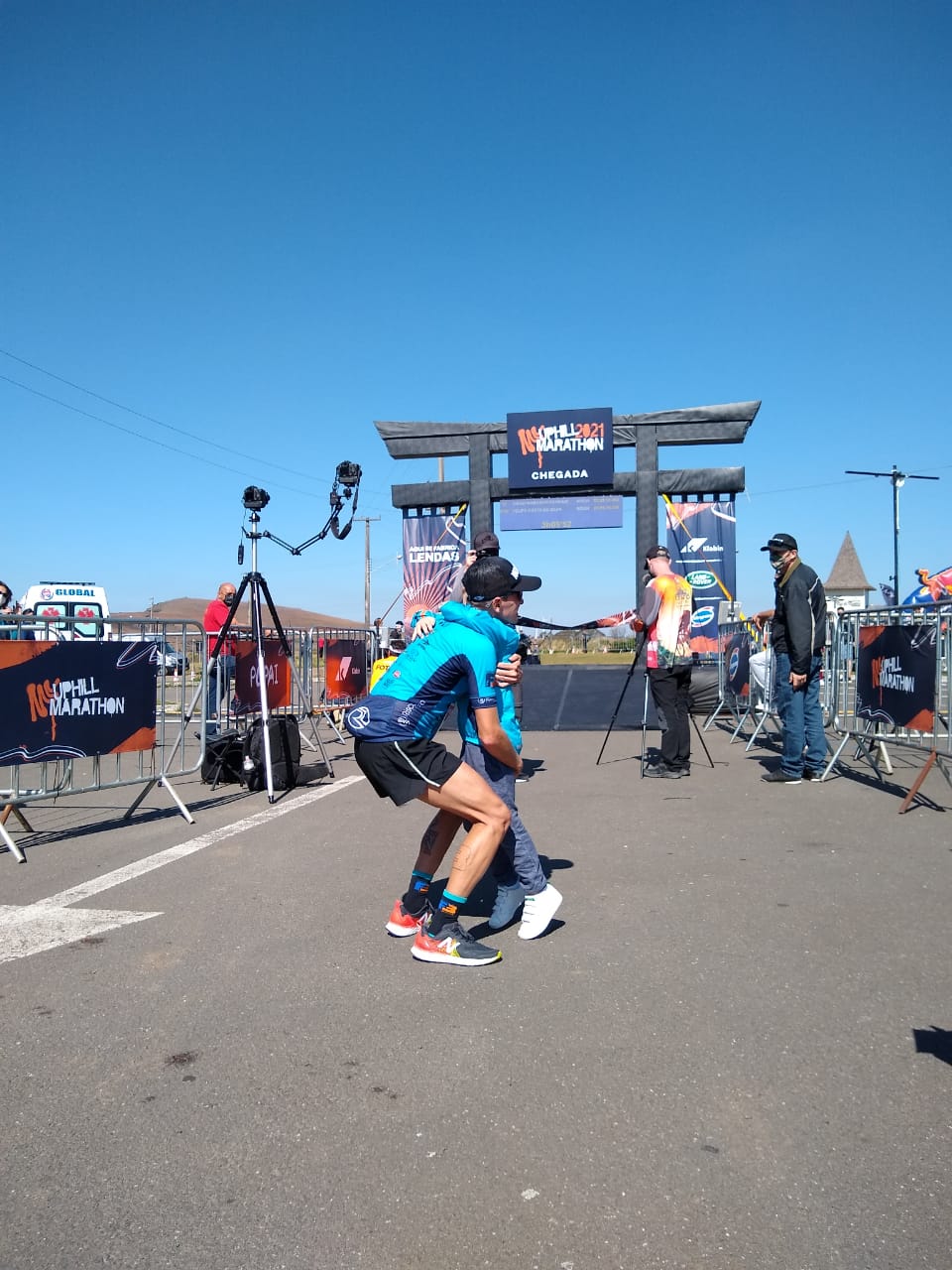 Ao passar pelas 284 curvas e os 1.421 metros de altitude, Felipe tinha um único objetivo: superar a própria marca de 2019, quando concluiu a prova em 3h09. E ele conseguiu. Por volta das 10h05, de mãos dadas com o filho João Antônio, de apenas 7 anos, o tubaronense cruzou a linha de chegada com o tempo de 3h05min14seg. Emocionado após mais de 3 horas de prova, o maratonista recebeu um prêmio, que para um pai, vale muito mais do qualquer medalha: um abraço apertado do filho após mais de 3 horas de prova.